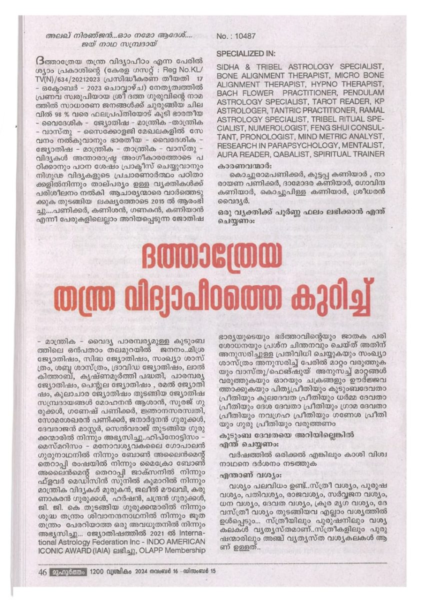 Head Quaters : Dattatreya Tantra Vidyapeedam, Kakkanad, Kochi, Kerala, India